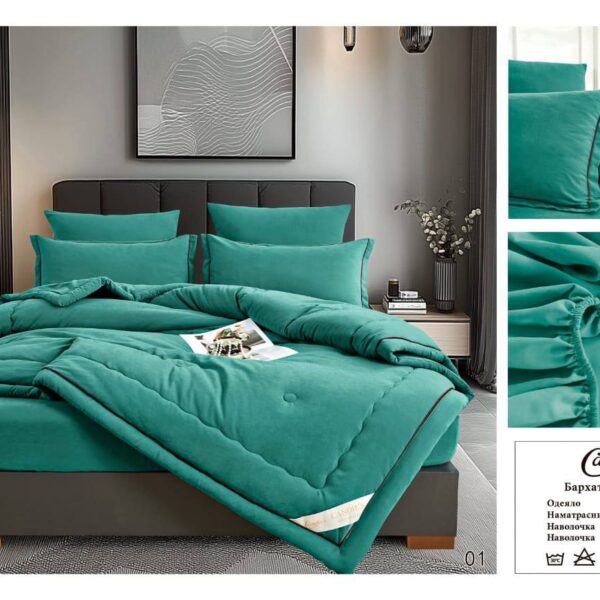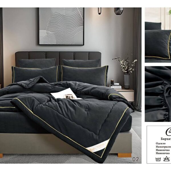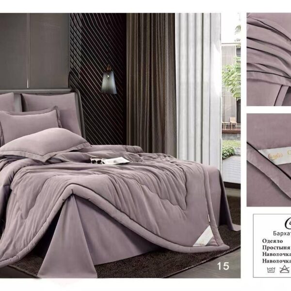 Комплект постельного белья MENSY Barhat с одеялом Одеяло: 200x220cm*1 Простыня: 240x250cm *1 Наволочка: 50x70cm*2 Наволочка: 70x70cm*2 Ткань: Бархатный Сатин; С