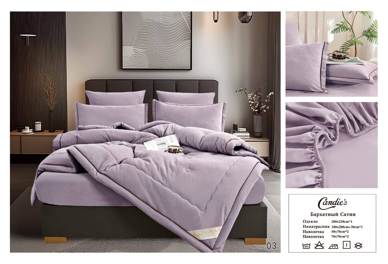Комплект постельного белья Candies Barhat с одеялом Одеяло: 200x220cm*1 Простыня: 240x250cm *1 Наволочка: 50x70cm*2 Наволочка: 70x70cm*2 Ткань: Бархатный Сатин; С