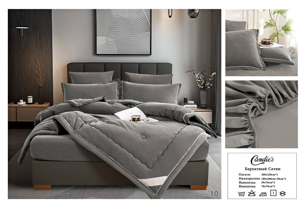 Комплект постельного белья Candies Barhat с одеялом Одеяло: 200x220cm*1 Простыня: 240x250cm *1 Наволочка: 50x70cm*2 Наволочка: 70x70cm*2 Ткань: Бархатный Сатин; С
